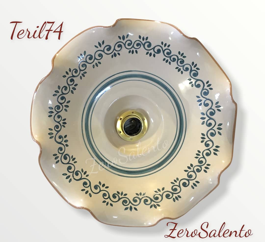 Lampadario in terracotta con bordi ondulati dipinto a mano verde TERIL74