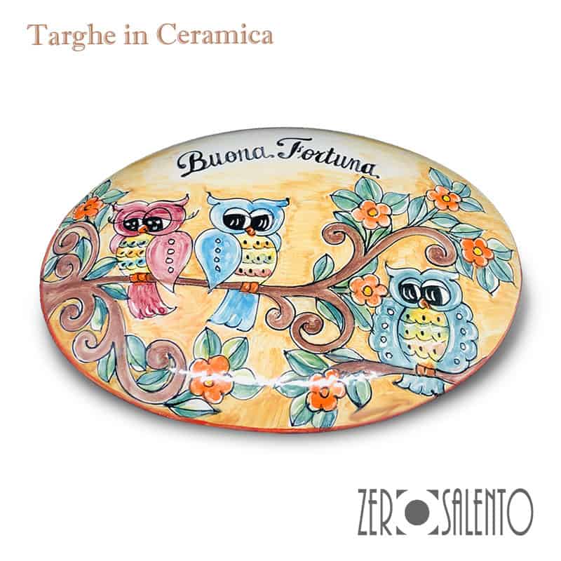 Targhe personalizzate in ceramica dipinte a mano – modello ovale con 3 Civette